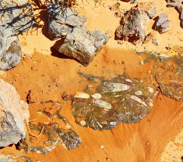 Retour à Mecissi par la piste, puis nous prendrons la direction de Tazzarine. Avant cette bourgade, nous prendrons la piste à gauche qui nous conduira 7,5 km plus loin à un important gisement d’orthocéras en exploitation. Exploration de la carrière et recherche des orthocéras.